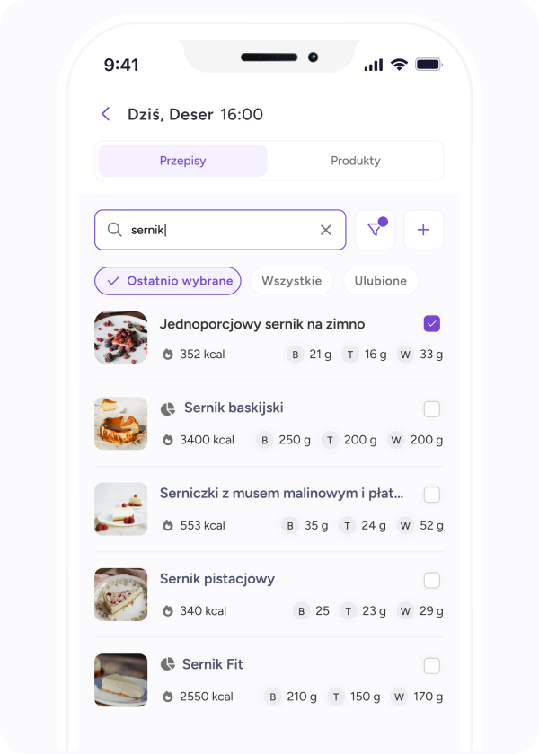 Opcjonalnie przygotujemy dla Ciebie program żywieniowy, którego składową mogą być inspiracje przepisów lub jadłospis. Aplikacja mobilna pomoże Ci w zmianie nawyków bez poczucia bycia na sztywnej diecie.